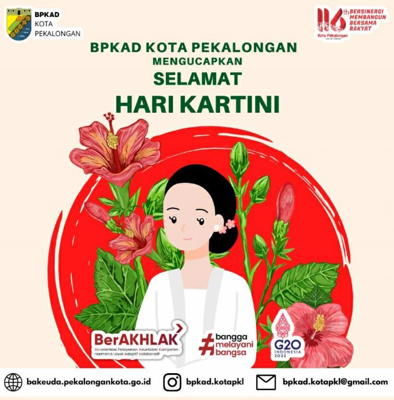 Hari Kartini 21 April 2022 ADMIN1BKD 21 April 2022 [11:46:38] 1052 ANEKA INFO PRINT + DOWNLOAD PDF BPKAD Kota Pekalongan mengucapkan Selamat memperingati Hari Kartini. Semangat para perempuan indonesia, mari buat perubahan. Kita mau dan pasti kita mampu