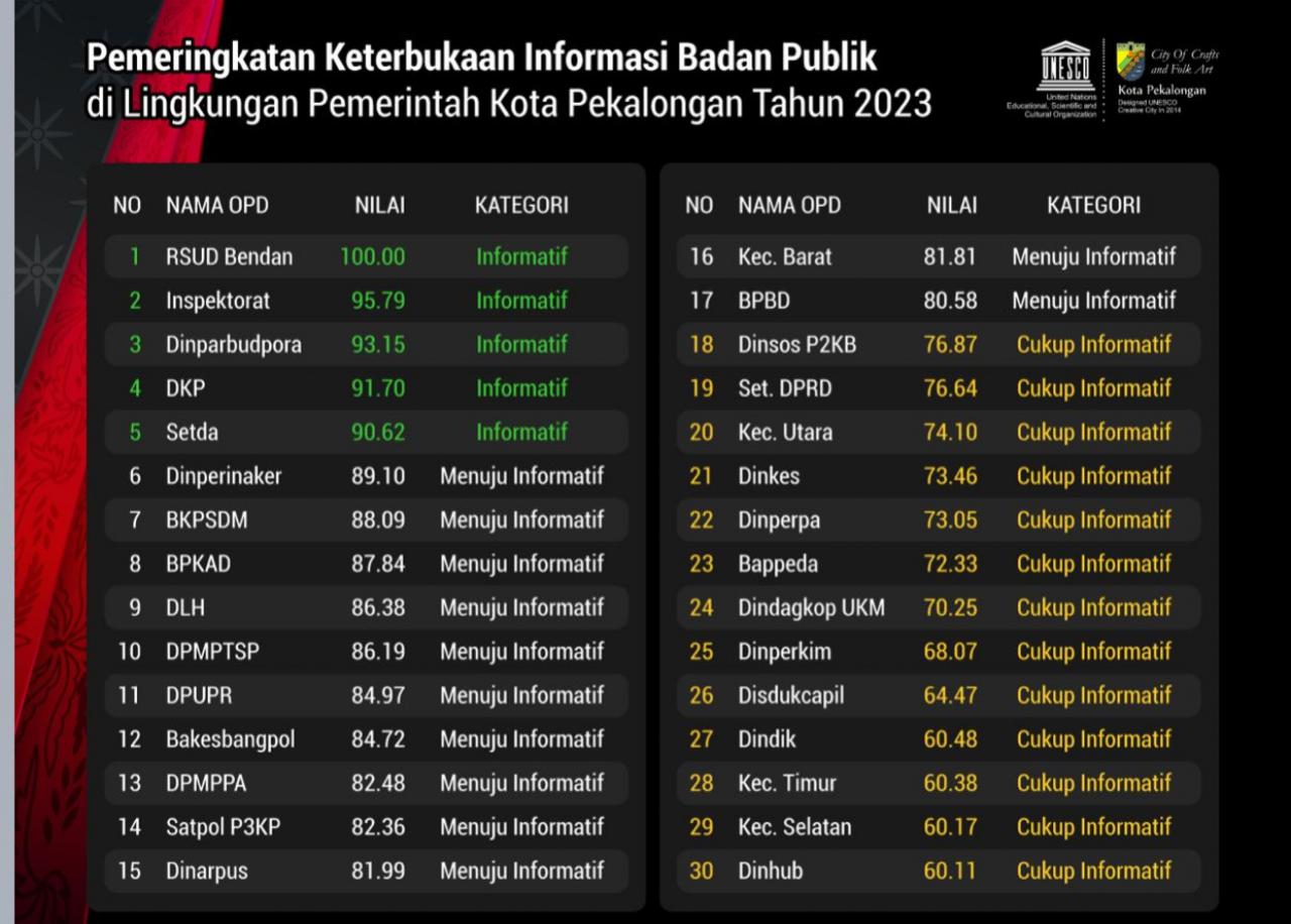ANEKA INFO PEMERINGKATAN KETERBUKAAN INFORMASI BADAN PUBLIK DI LINGKUNGAN PEMERINTAH KOTA PEKALONGAN TAHUN 2023 30 Januari 2024 [08:42:40]